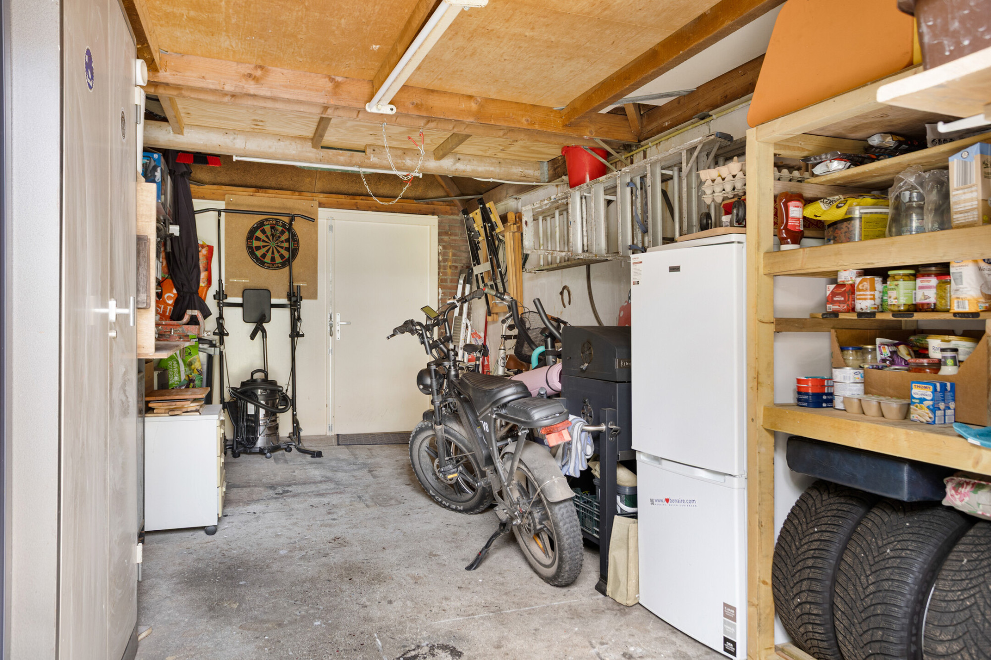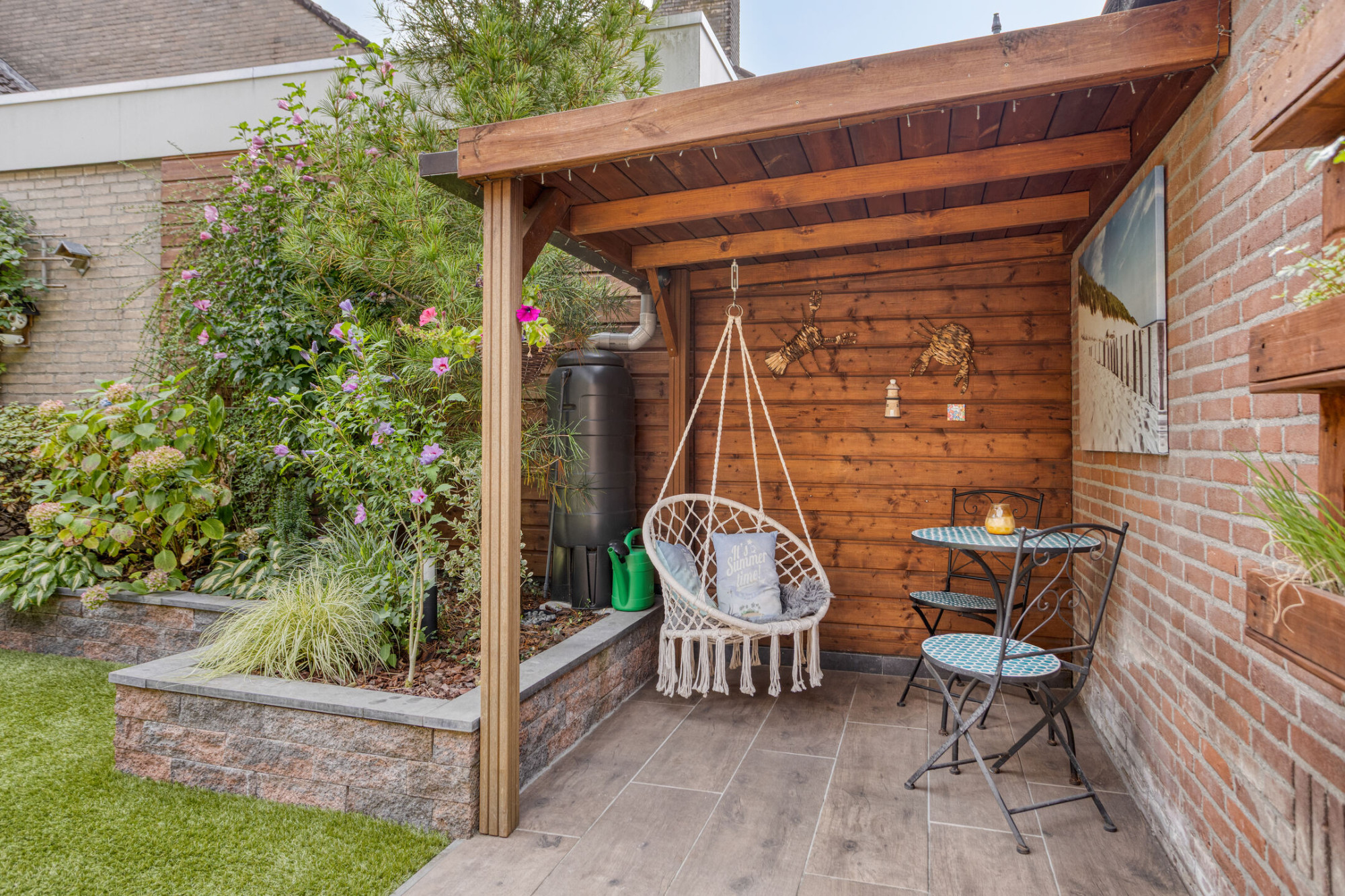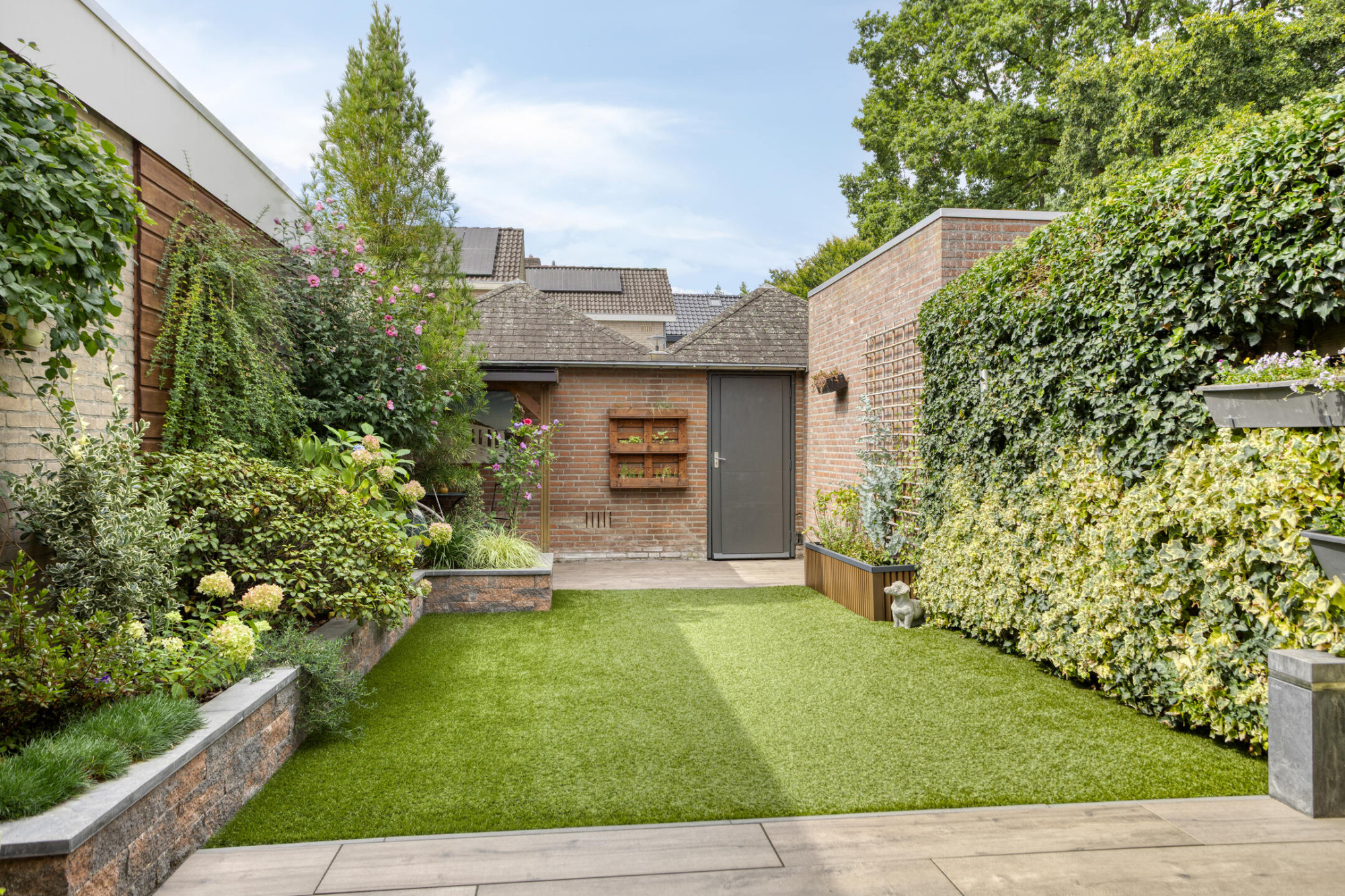 Via de openslaande tuindeuren in de woonkamer bereik je de fraai aangelegde tuin van circa 47 m², gelegen op het westen. De tuin is ingericht met keramische tegels, kunstgras en diverse beplanting. Daarnaast beschikt de tuin over een praktische overkapping en een garage met elektra, die aan de achterzijde is voorzien van openslaande deuren.