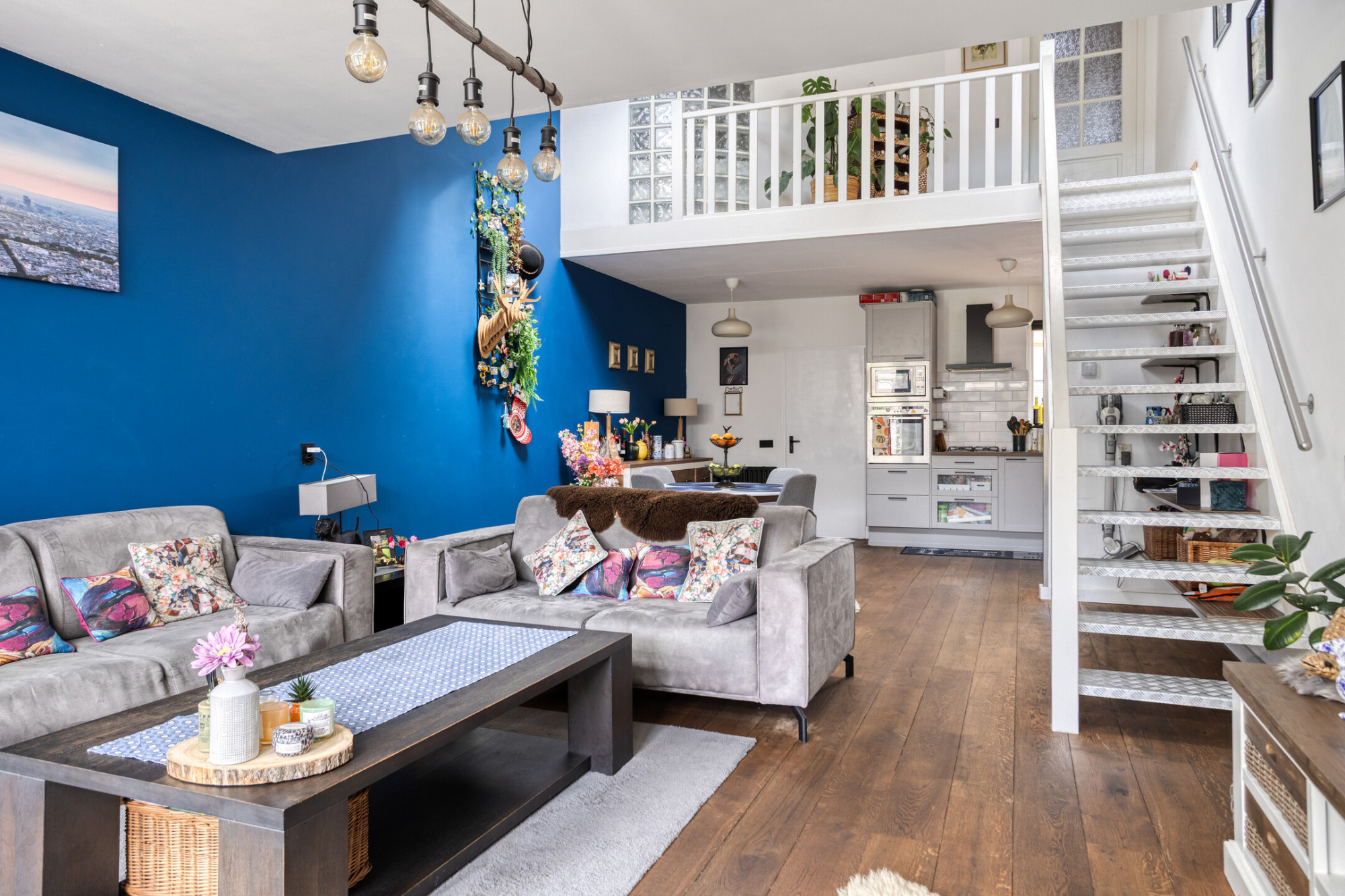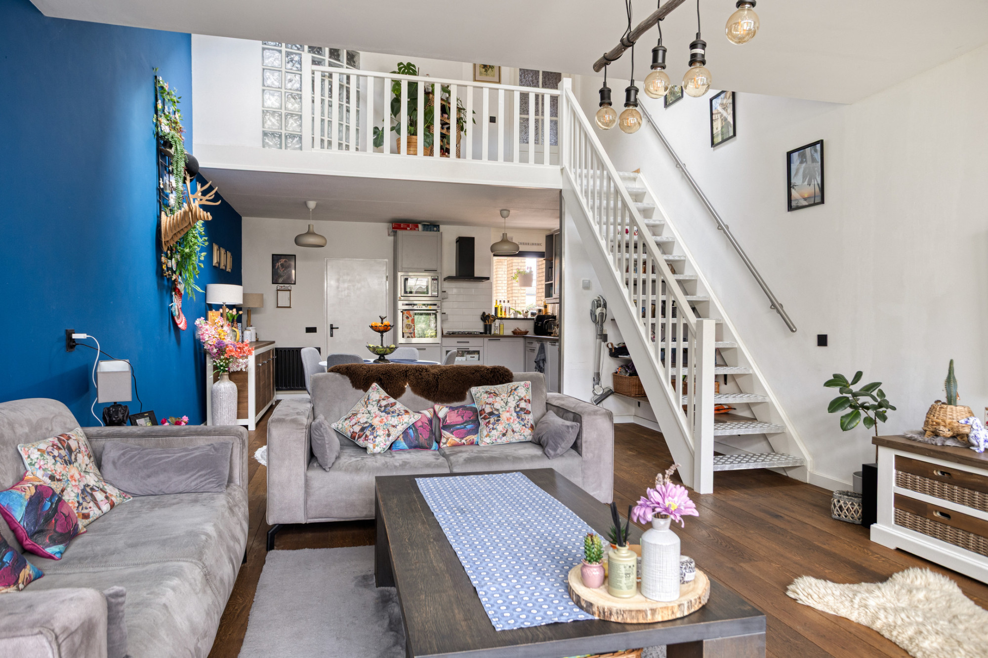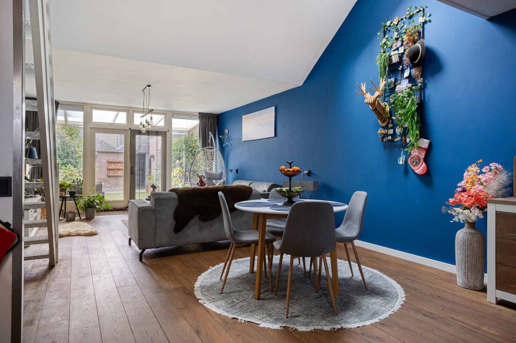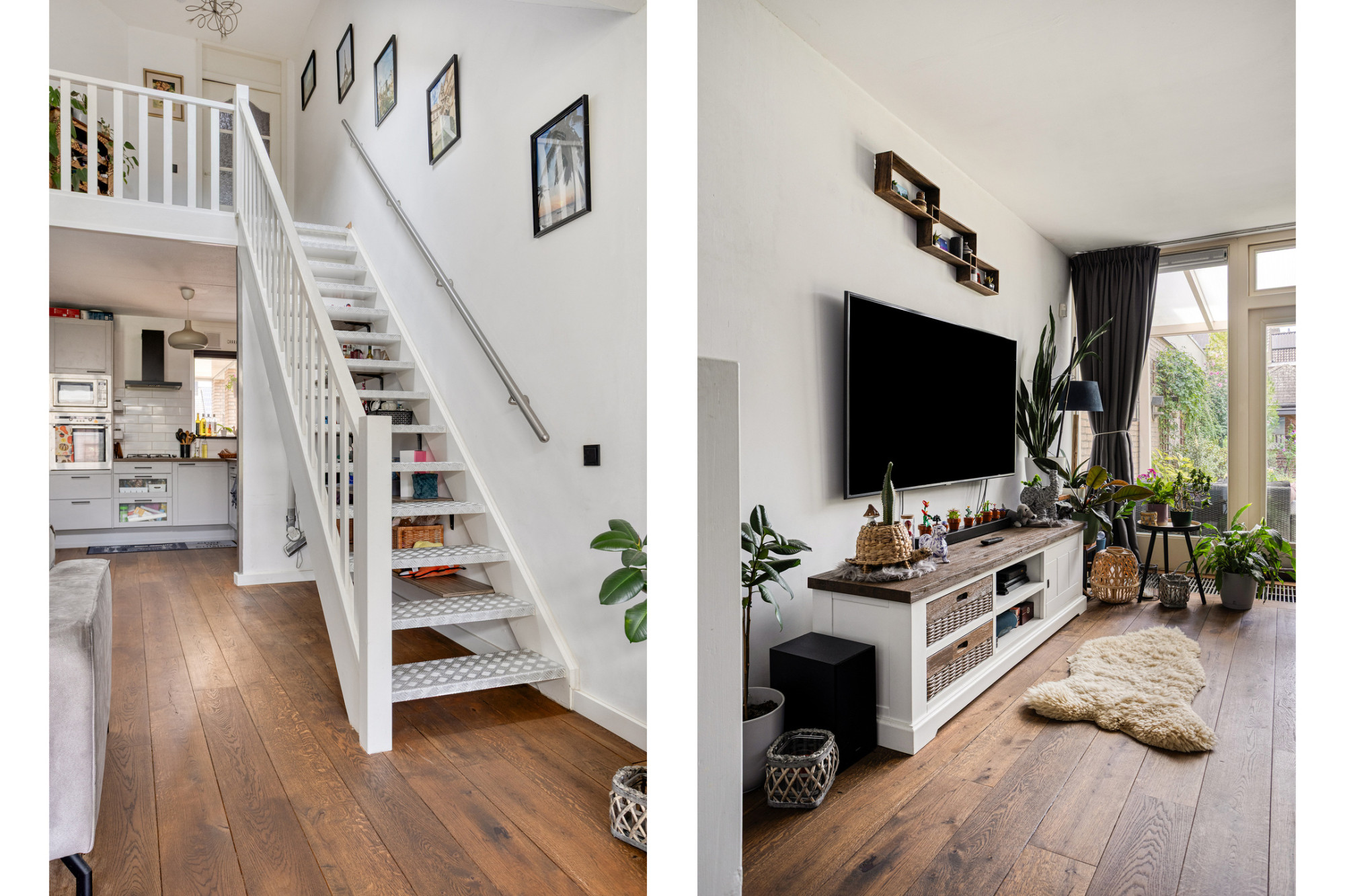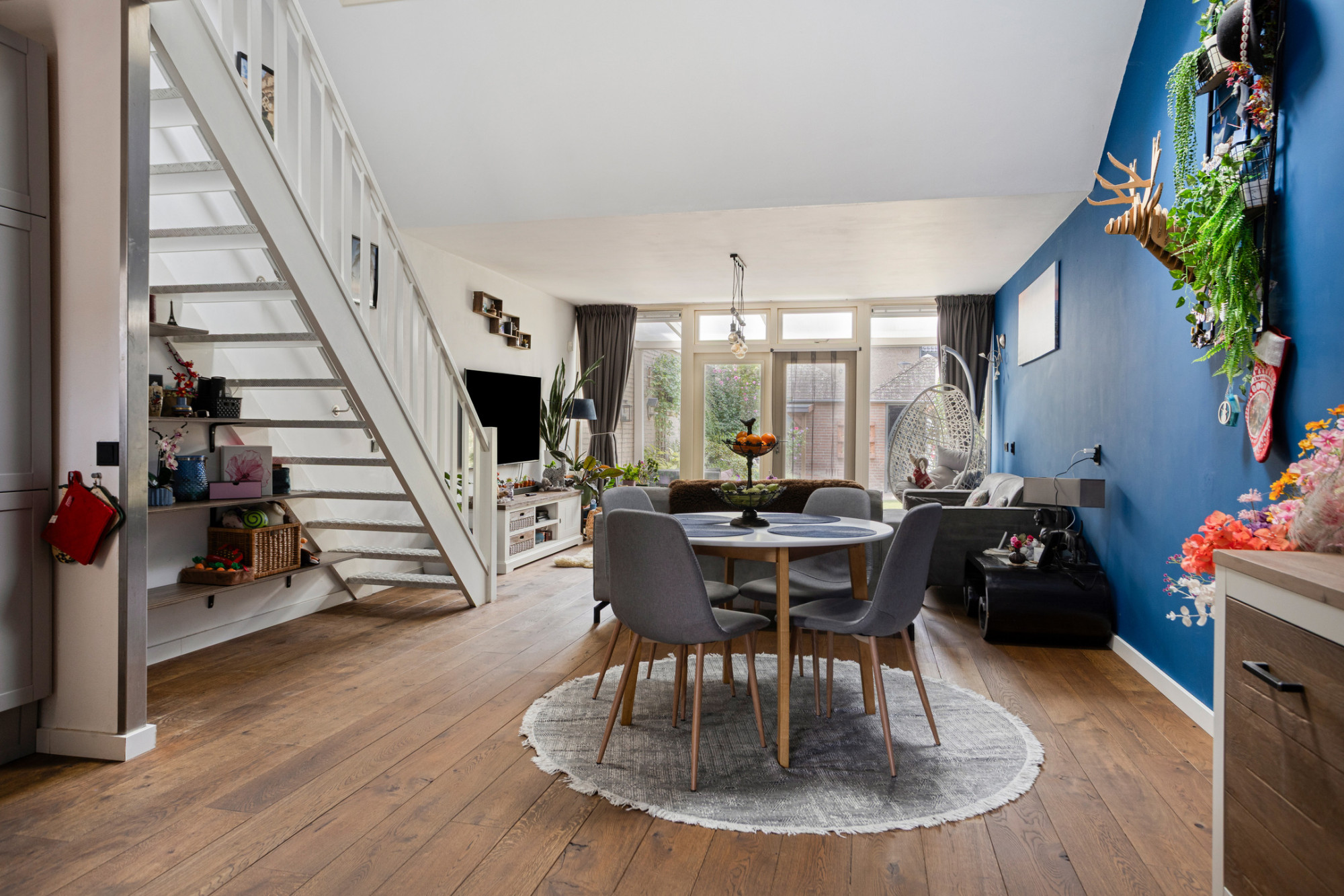 De woonkamer met open keuken heeft een oppervlakte van circa 44 m². De ruimte is voorzien van een massief eiken planken vloer, welke in 2019 is geschuurd en geolied. Dankzij de grote raampartijen, openslaande deuren richting de tuin én de extra dakramen in het schuine dak geniet de woonkamer van veel lichtinval en een prettig uitzicht. De open indeling biedt plaats voor een ruime zithoek en een eethoek, waardoor het een fijne plek is voor zowel ontspanning als gezellig samenzijn.