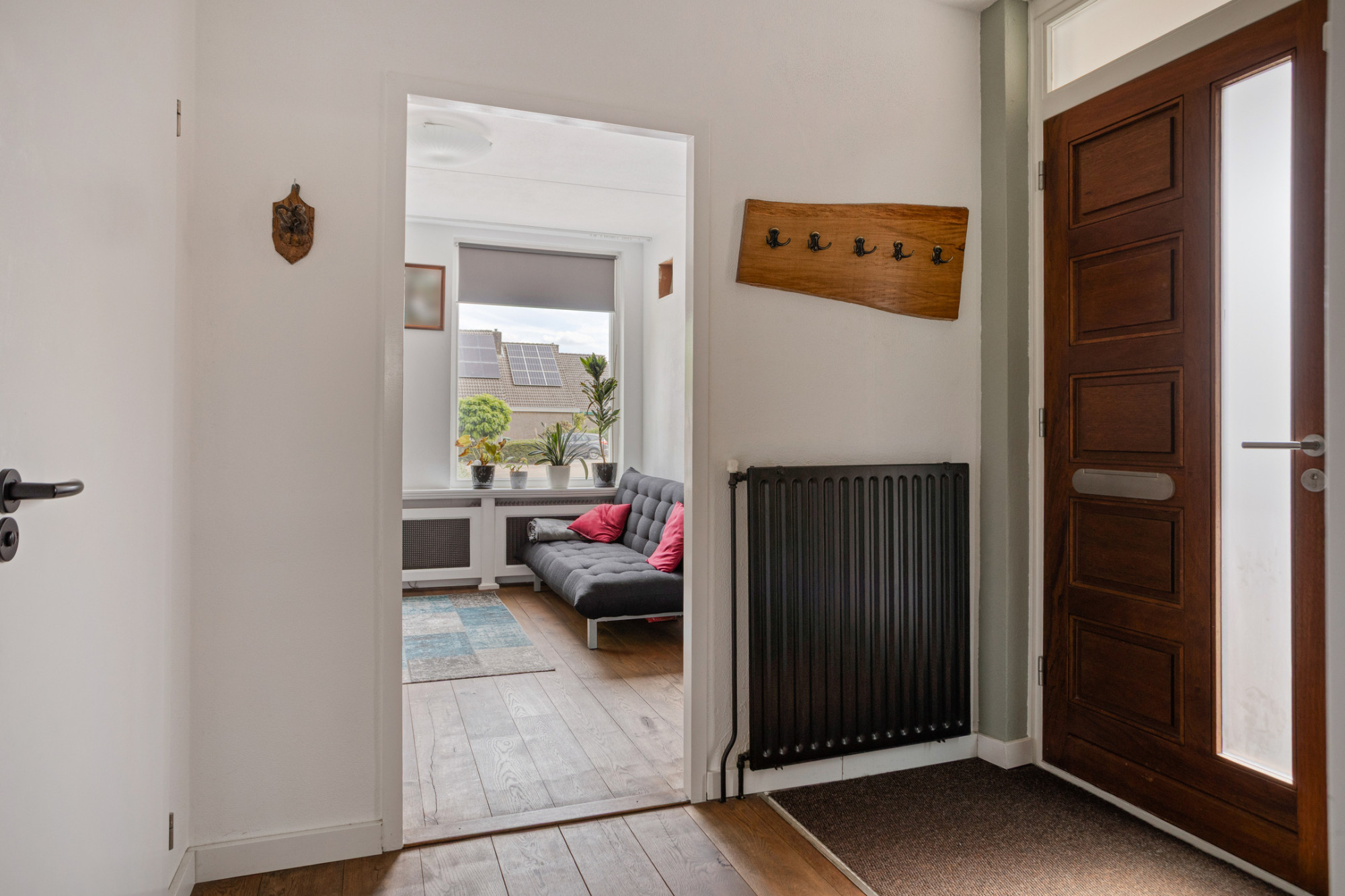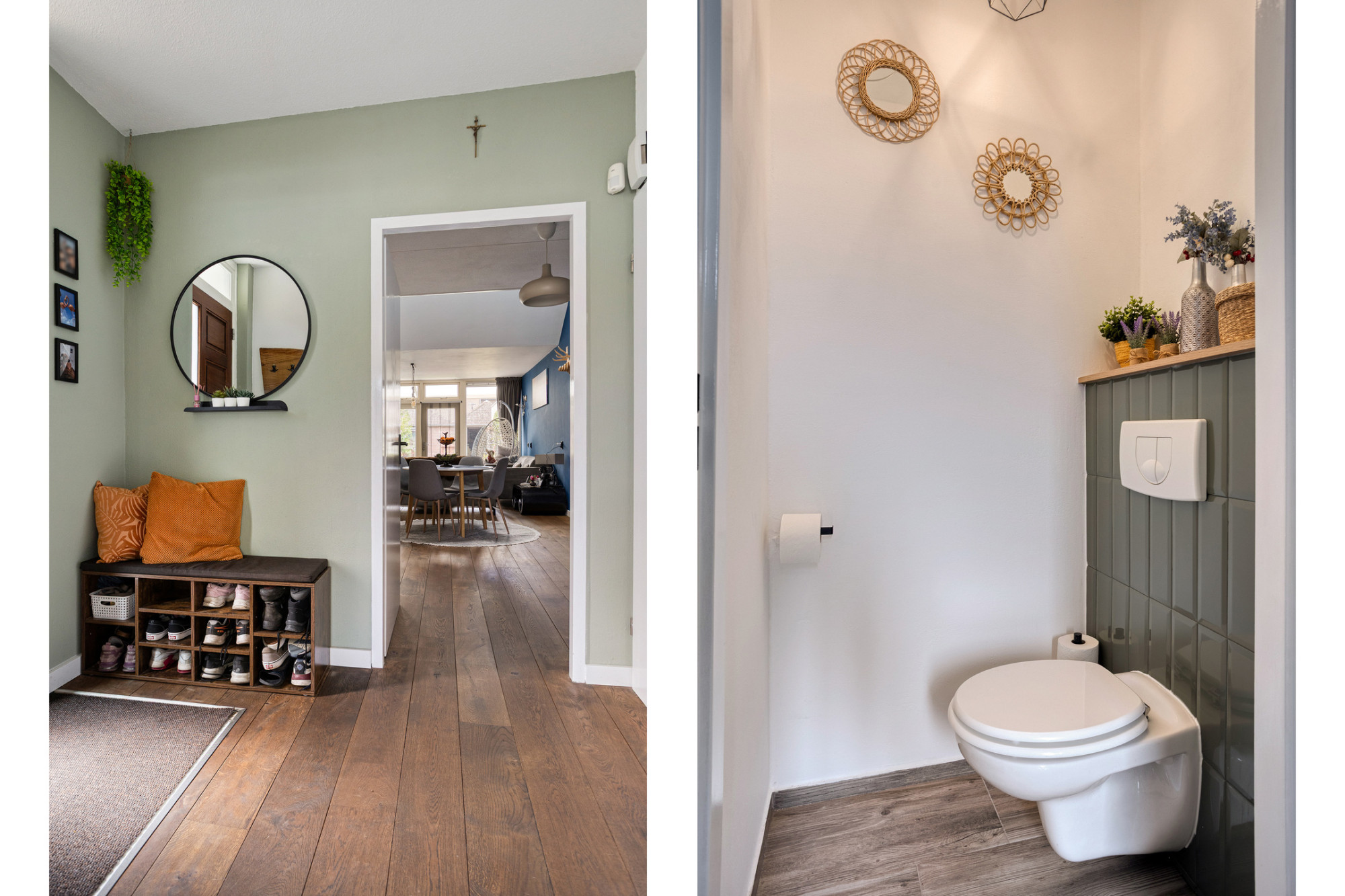 Via de voordeur kom je binnen in de hal van de woning. In de hal bevindt zich het toilet, dat in 2024 vernieuwd is en is uitgerust met een wandcloset. Daarnaast is hier de meterkast met een vernieuwde groepenkast gesitueerd. Vanuit de hal zijn een aparte kamer en de woonkamer bereikbaar.