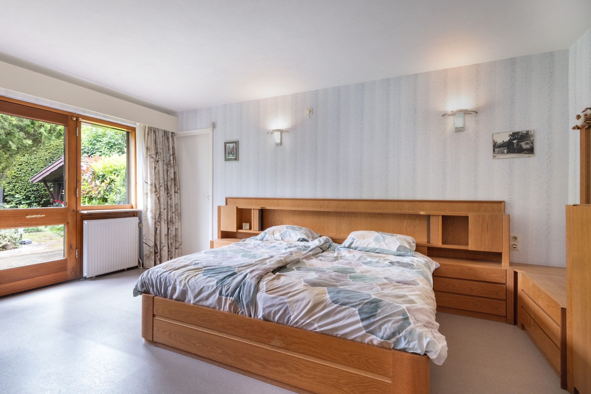 Slaapkamer met inloopkast en toegang tot de achtertuin.