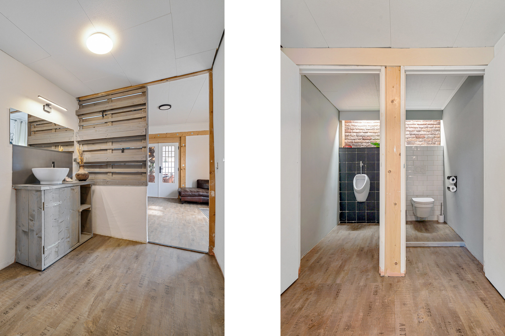 Aansluitend vind je een pantry met wasbak, extra toilet en toegang tot de garage. De toiletruimte op de begane grond is compleet uitgevoerd met wastafelmeubel, toilet en urinoir.