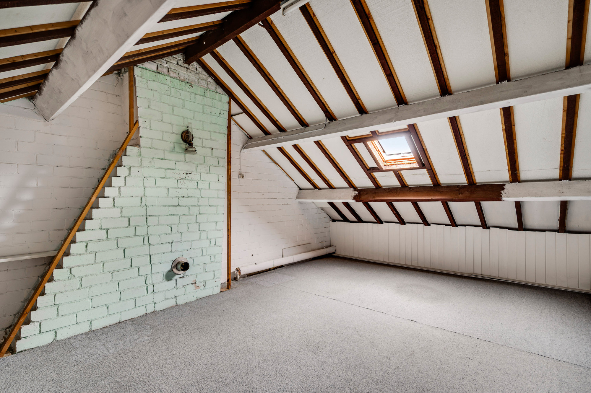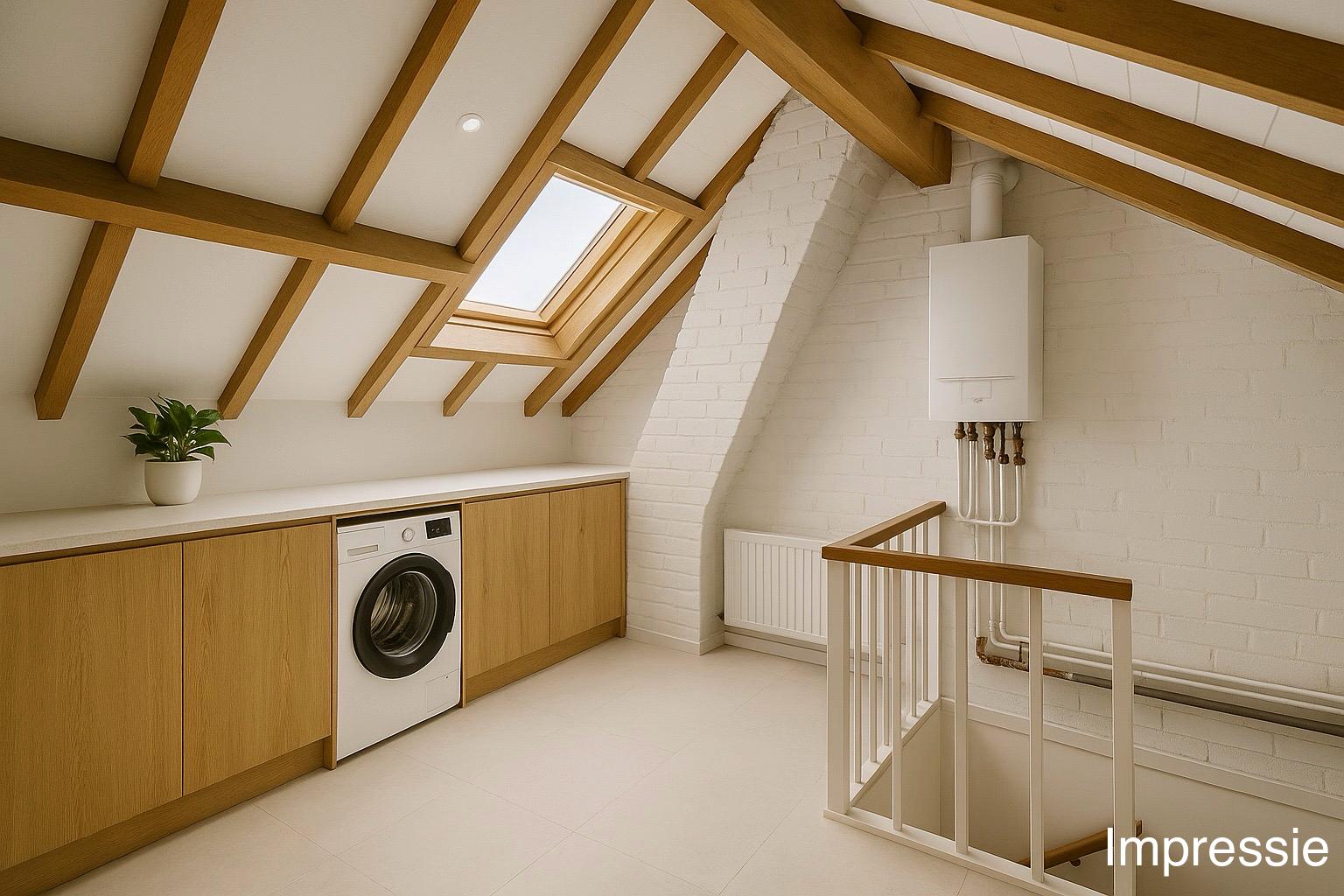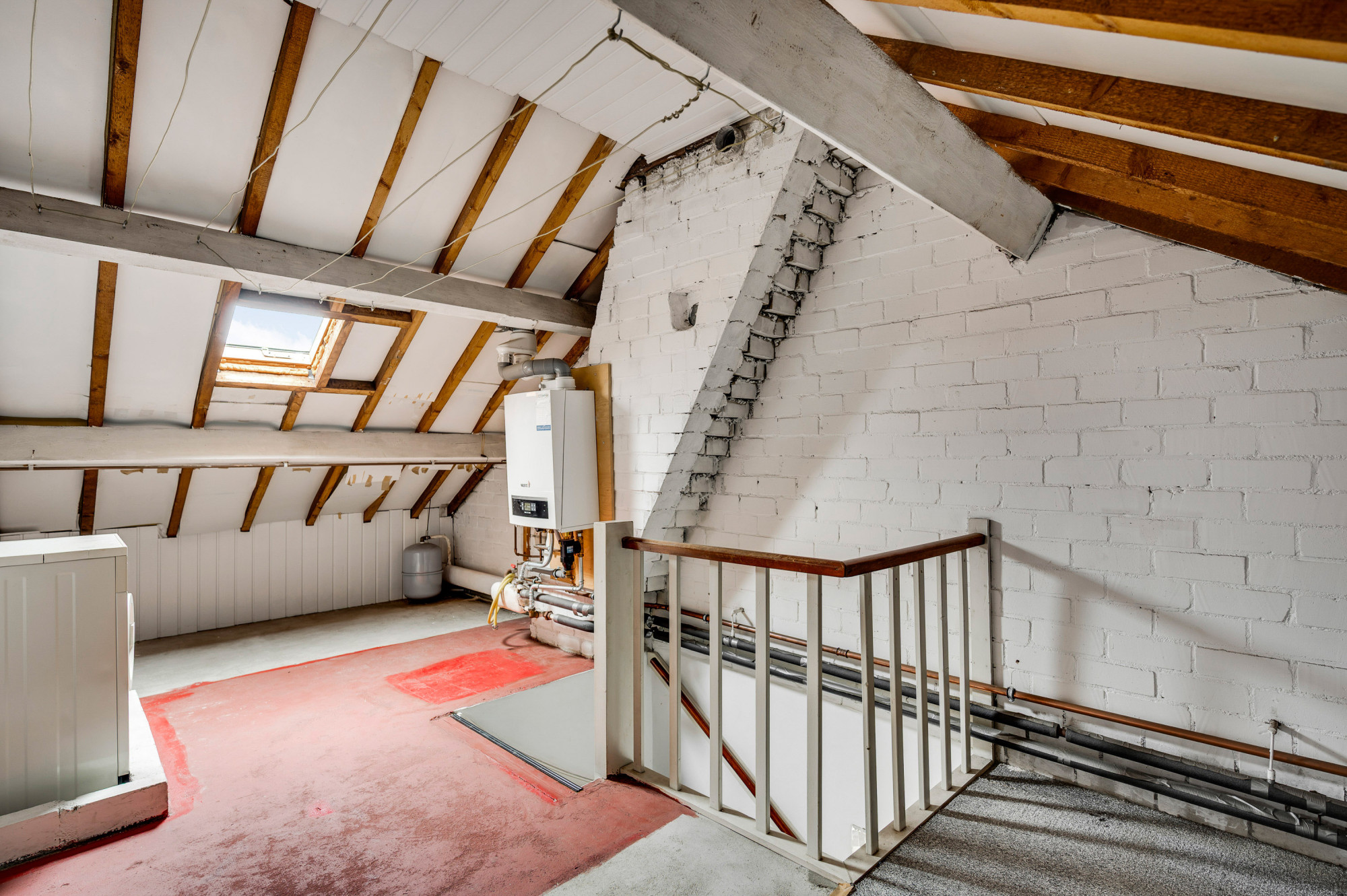 Via een vaste trap is de zolder bereikbaar. De dakramen hier zijn in 2020 vernieuwd met isolatieglas. Hier kan eenvoudig een vijfde slaapkamer of hobbyruimte worden gerealiseerd. De Nefit Trendline combi-ketel (2018) is bij het eerste gedeelte van de zolder gesitueerd, evenals de witgoedaansluitingen.