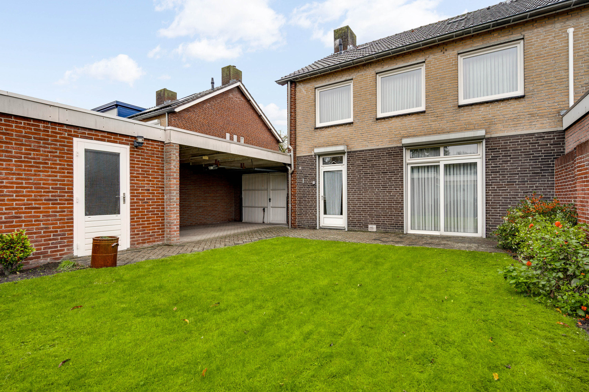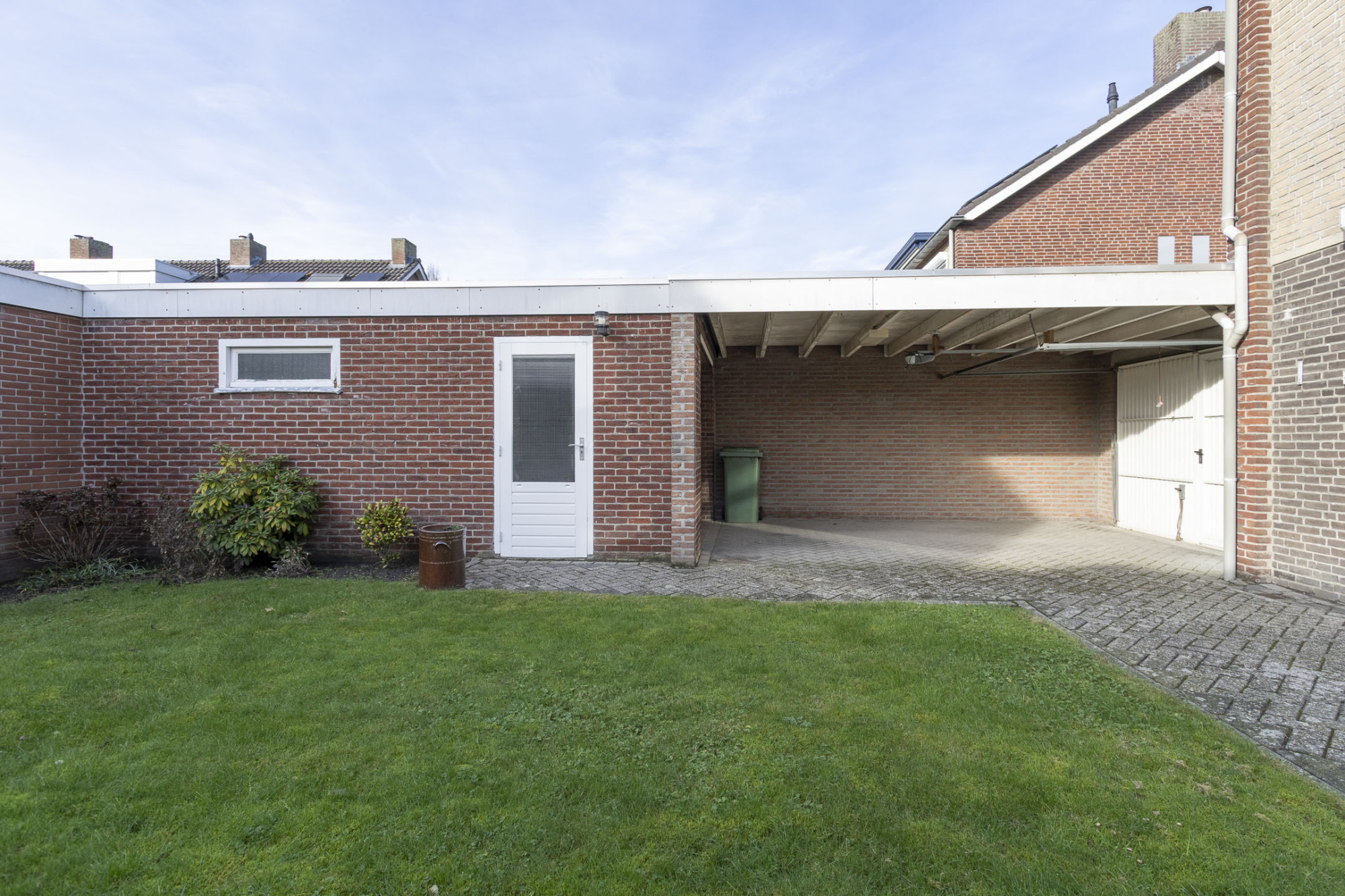 De achtertuin is bereikbaar via de schuifpui in de woonkamer en tuindeur in de keuken. Deze biedt volop mogelijkheden om te genieten van het buitenleven. Aan de zijkant van de woning bevindt zich een garage met carport met elektrische kantelpoort en aansluitende een ruime garage. Deze is praktisch ingericht en biedt ruimte voor opslag of hobby.